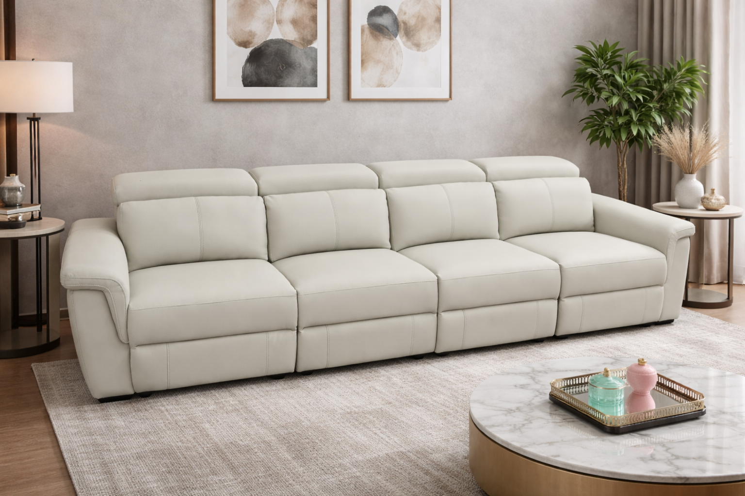 Elevate your living space with this 4 seater genuine leather sofa, designed for comfort, durability, and timeless style. Upholstered in smooth, high-quality leather, this sofa offers generous seating and a clean, modern look that suits a wide range of interiors.