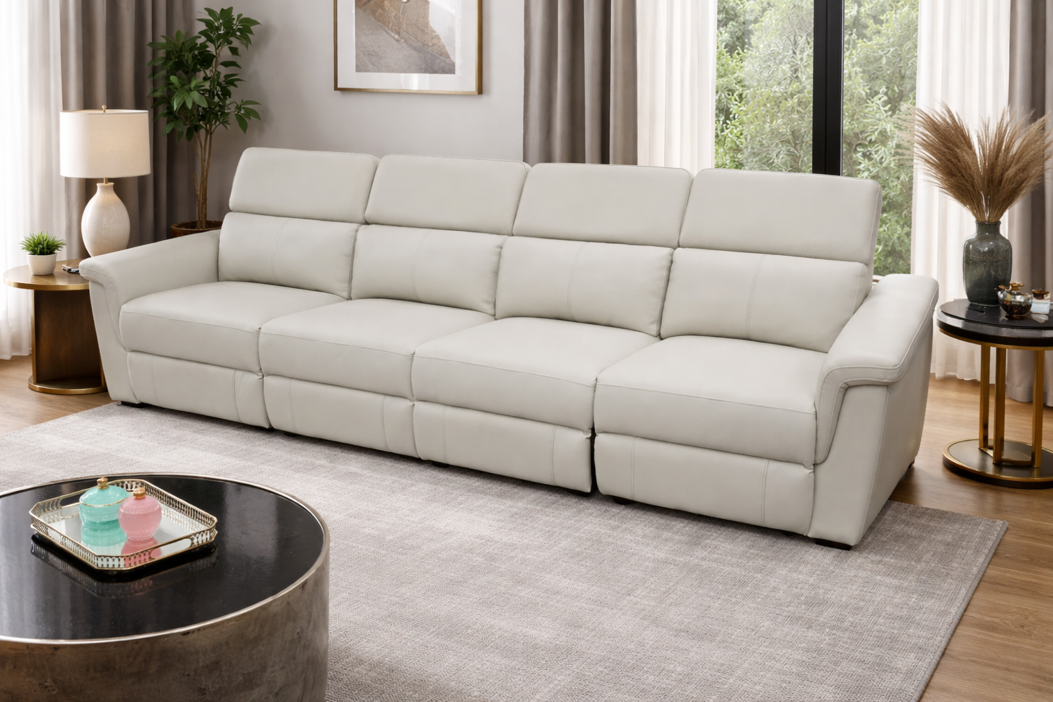 This is a non-recliner model, ideal for those who prefer a sleek, structured sofa without moving mechanisms. Its spacious design makes it perfect for family living rooms, entertaining guests, or open-plan spaces.
