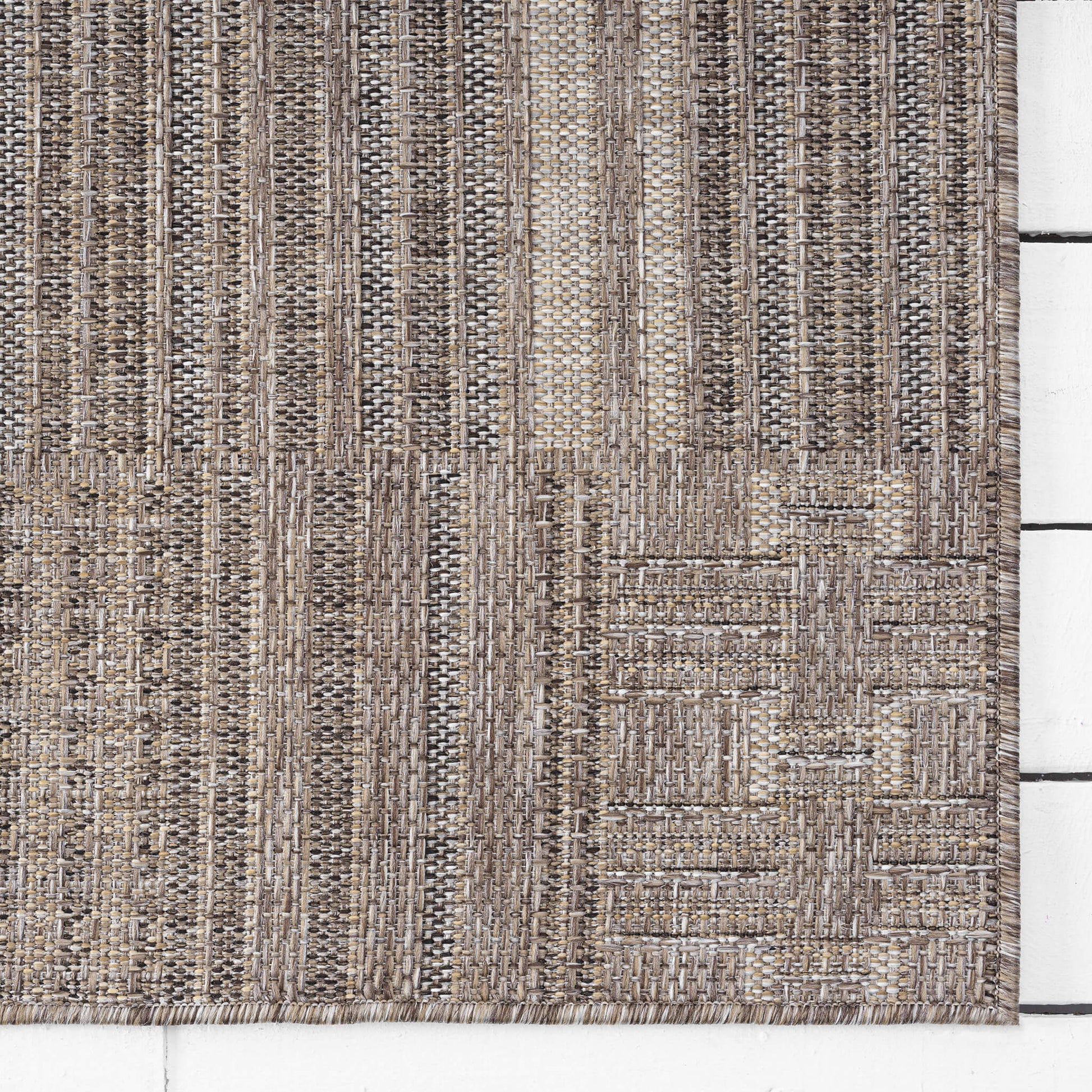 This flat-weave, indoor/outdoor collection has a subdued colour palette for versatility, and is power loomed from polypropylene with a water-resistant base. This budget-friendly range, while complementing interior spaces, is also suitable for outdoor use in covered patios, balconies, terraces, and courtyards. This highly decorative collection also has quality finishes including all-side binding, and contains shed-resistant and anti-static properties for easy maintenance.